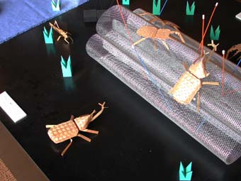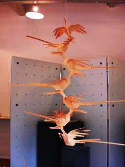 ひので細工とは、日の出町に産する檜材を薄くスライスし、帯状にカットしたもので動物たちを編んだ安久利徳氏の創作品です。