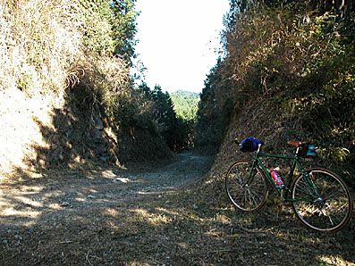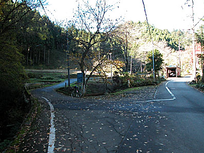 梅が谷峠の五日市側・資材置き場脇を入る。梅方峠は交通量が多いので要注意!