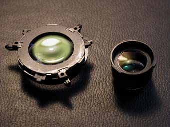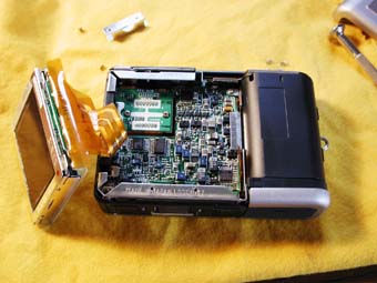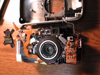 空けてびっくり。パソコンを分解したときと同じ。基盤と配線でいっぱいでレンズはおまけ。ホントに小さい。