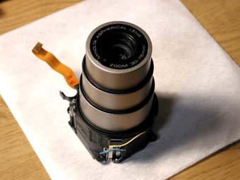 分解を始めると順調に進んだ。隠されたネジも楽に見つけることが出来、ついに非球面レンズを手にすることが出来た。