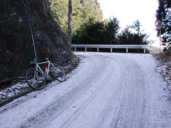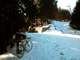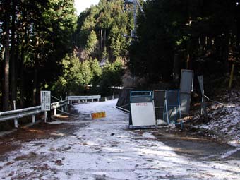 車は麓近くから峠まで完全に通行止めだ。どうも雪に関係なく通行止めのようだ。