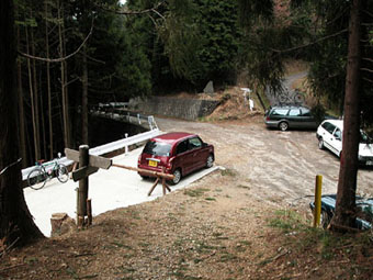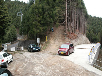 梅の木林道 が開通した梅の木峠、車・バイクは通行できません。駐車しているのは登山に来た人の車です。