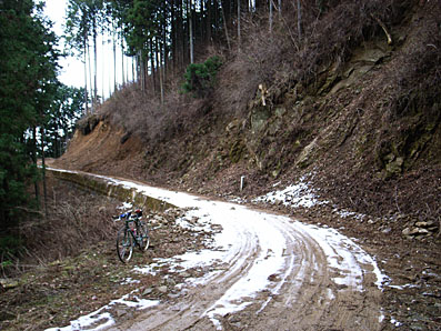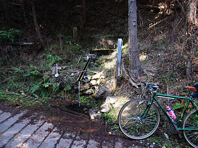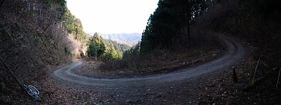左に曲がると焼岩林道、直進が平井川源流へ、右に行くと梅野木峠 焼岩林道入り口